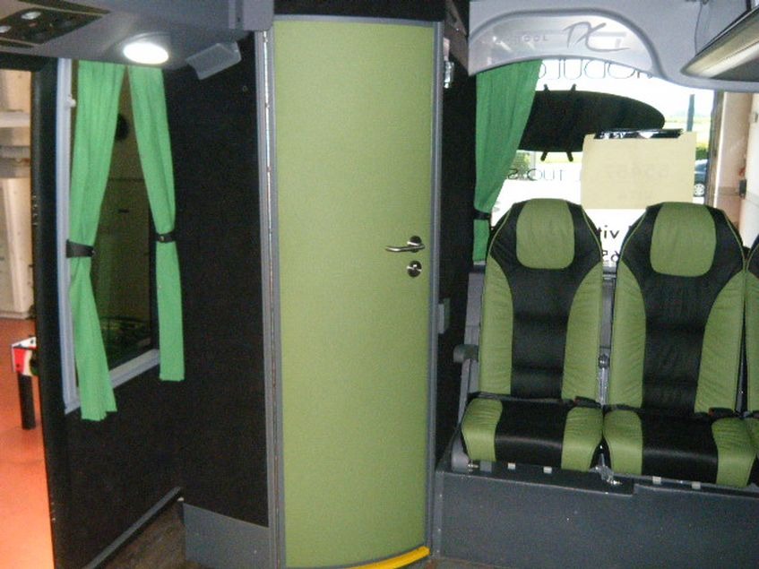 Allestimento DELUXE con possibilità di installare una fila di sedili singoli su un lato. Tutti i sedili sono dotati di poggia gambe.