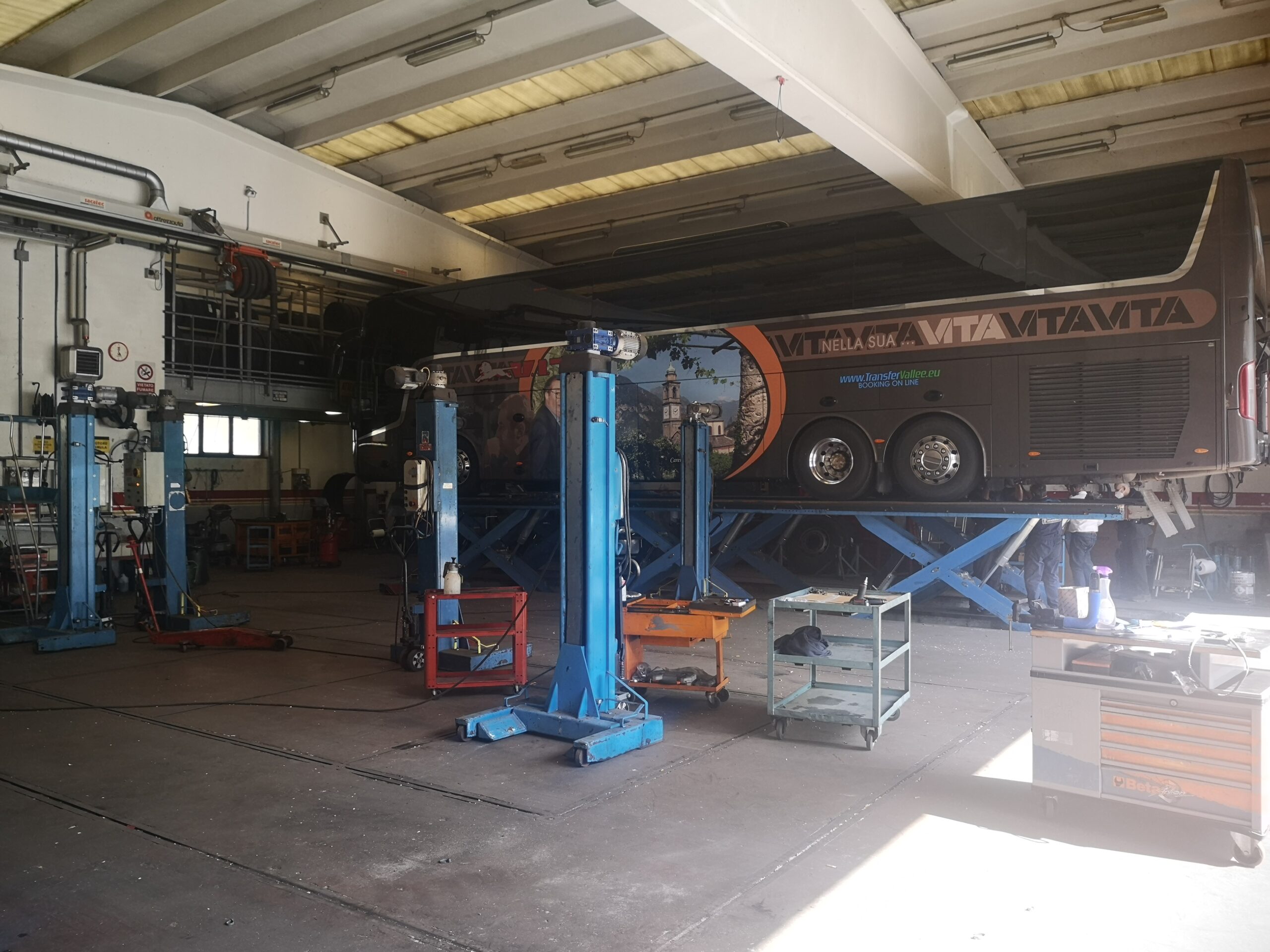 La sicurezza dei nostri mezzi e la tranquillità dei vostri viaggi è garantita dalla presenza di un’officina altamente specializzata, interna all’azienda, gestita da personale con specifica esperienza ed alta professionalità, la quale effettua cicli di manutenzione preventiva a cadenza programmata al fine di garantire il costante mantenimento delle condizioni di efficienza e sicurezza del veicolo. L’assistenza è assicurata 24 ore su 24 e grazie ad un’attrezzatissima officina mobile può intervenire ovunque.